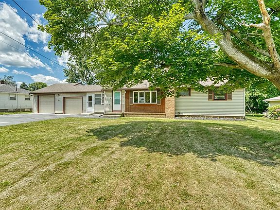 What a great little ranch with full basement! Furnace and A/C, 2016, new hot water heater, 2021. Hardwoods in living room, hallway and 2 bedrooms refinished and stained with darker color, Jacobean, 2020. Brick surround with wood mantel for wood burning fireplace. Wonderful size bedrooms with good closet space. 10' X 12' deck and concrete pad patio! Garage spaces are deep and one is a full drive through. Breezeway is ready for your reading and relaxing, newly painted floor! Large yard! Roof is approximately 7 years. Come see this cute ranch! Delayed showings until Thurs, 6/30 at 11:00 a.m. Offers due Thurs, 7/7 at noon.