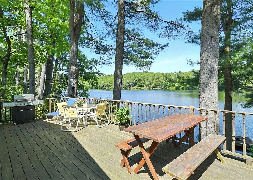 Looking for peace and serenity, well here it is! Check out this splendid seasonal sanctuary on Hammond Pond! This summer home has been well maintained and very loved by the current owners, allowing the next owner to truly enjoy the relaxing space. There are 3 bedrooms and 1 bath, with a sleeping loft off of the main room. The open flow of the kitchen, living/dining room, to the pond deck allows for great entertaining, and being close to nature. Imagine your morning coffee on the dock or grilling out on the deck that overlooks the pond. Maybe wind down inside, soaking in the water view from the large windows in the living room. Furniture and items to remain. Enjoy being a member of the private association with access to the rec barn, swim beach, small golf course, and other amenities. 25 minutes to Northampton, 40 mins to Greenfield, 30 mins to the Berkshires. **First showings at open house, Friday June 6th!**