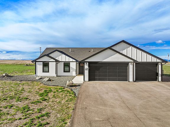 This beautiful KIB home is situated on 2.5 acres with an amazing, unobstructed view. Single level living with vaulted ceilings, 4 bedrooms, 2 full bathrooms, and an oversized 3 car garage. There are leathered and granite countertops, a tiled walk-in shower, central air, a fenced yard and landscaping with a dripline is in place. Optic fiber internet. The garage is already plumbed for heat. Private septic and (2) 1500 gallon cisterns. This home is immaculate and so well built. Gorgeous Montana views during all four seasons of the year. Schedule a showing today. Call Jana Weaver at 406-868-7757 or your real estate professional.