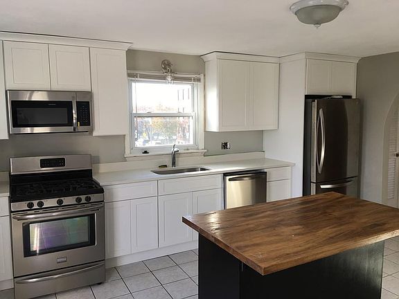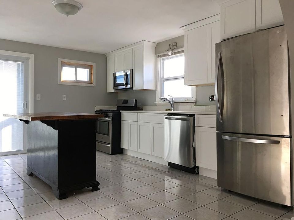 Comes with two off street parking spaces Two bedroom unit in East Boston's Eagle Hill has some nice features and amenities! Two floors of living with a deck and 2 off street parking spaces! Hardwood floors run throughout most of the unit with tiles in the newer bathroom and kitchen. The Kitchen's open floor concept overlooks the living room and the rear deck with city views. The kitchen has brand new white shaker cabinets with white quartz countertops. This kitchen has Stainless steel appliances with an island! The bedrooms are on the upper floor and have ample storage. This unit is on a bus line/rapid transit. It's also conveniently located near neighborhood business's!
