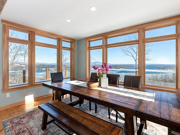 If your Looking for a JAW DROPPING VIEW you have to step inside this CUSTOM home! This Modern Open Floor plan house was built using hand selected reclaimed barn beams from local New England barns to make you instantly feel warm and invited when you step inside. Custom glass railings on all the decks enhance the views. This house is what the lake lifestyle is all about - designed for entertaining! The custom home sits on the most secluded lot within Meredith Bay gated community, on the end of a beautifully landscaped cul-de-sac. Nothing will ever be built in front of the view! If you want a one-of-a-kind home with creative details, with some of the bests views in the Lakes Region and all the amenities that go with it, then look no further. Use your golf cart to take the paved path down to Akwa Marina, where you can keep your boat in your deep water BOAT SLIP. Play on the beach or grab a lobster roll at the beach bar, while lounging by the fish-shaped pool. Take a stroll on the groomed walking trails to the pool and pavilion, enjoy the tennis courts, gym, playground or garden center. The amenities are second to none in the Lakes Region. There is always something to do. It's a mere 14 minutes to Gunstock, 7 minutes to shopping and dining in downtown Meredith. Agent has ownership interest.