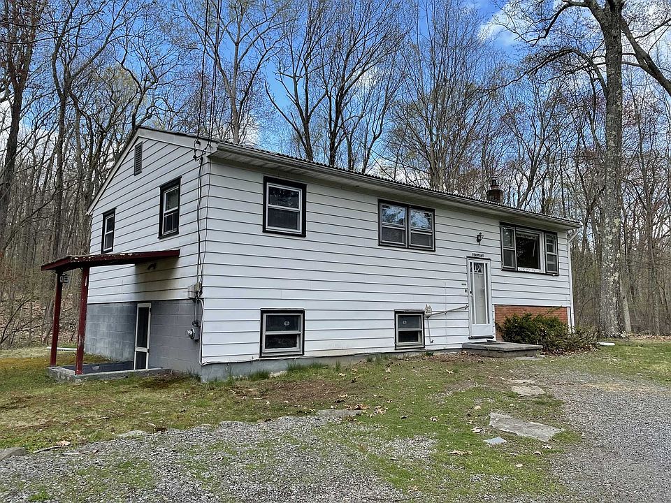 Fully Available! Flippers, investors, do-it-yourselfers, bring your creative energy to this diamond in the rough! Good bones, hardwood floors, open kitchen and dining area, 3 bedrooms and full bath. Spacious, unfinished lower level with walkout, laundry area and new boiler. Lovely, wooded property with stream. Perfect quiet location just minutes to Highland Village, Mid Hudson Bridge, New Paltz, NYS Thruway. Taxes are with exemptions and must be verified.