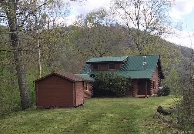 Beautiful Log Home on over 5 acres located in the highly desirable Crabtree area. Home was built by Scott Campbell construction. Great year round access. Covered front porch to sit and enjoy the year round mountain views. Also comes with a tiny home guest cabin 160 sq. ft equipped with a bunk bed, sink and toilet. 10 by 10 Log Storage building. This unique log home has whole log beam rafters. Small Bedroom on Main with full Jack and Jill bath for guests. Master located in upstairs loft with full bath.Perfect vacation home in the mountains!!! Home is priced to sell As-Is.