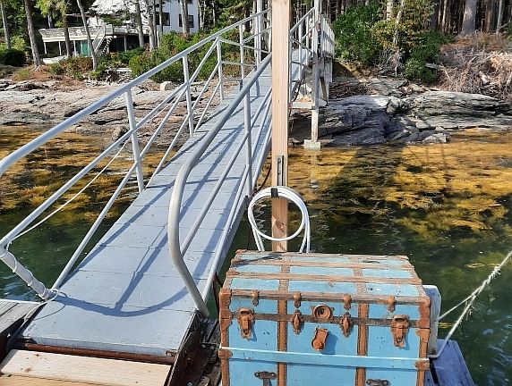 A beautiful island getaway this lovely, rarely comes along!. It is just a 2 min boat ride from the mainland association dock, no cars, scooters or golf carts, Pure serenity! Enjoy 430 feet of Maine rocky coastline to explore, and at low tide a sweet little pebble beach to enjoy with famiy and friends. This 2.1 acre parcel certainly has lots of wood to keep the fires burning along with the smell of evergreens mixed with salt air! A smell you cannot replicate. A 12 X 24 marine heavy duty dock and pier await your arrival! A huge front deck overlooks the bay and will easily accommodate 30 plus guest Eagles, lobster boats, sailboats, pink sunsets add to your breathtaking view. Evenings looking at the vast sky and stars is a sight to see. Electricity powered by solar is a huge plus and the island has a great well that services all the cottages,and this cottage has a 275 gallon rainwater reserve. This cottage has been completely renovated in bright calm colors that replicate the ocean feel. By boat, you are free to explore all that the beautiful Maine coast has to offer, minutes from Cundys Harbor, Sebasco, and plenty of cruising to Boothbay, Southport, and many secret places to explore. Or, if you choose a lazy day in the hammock by the water with the ocean breeze keeping you cool. An amazing place for all ages to enjoy !! The association has a great mainland parking area for you and your guest as well as a boat house for storage for your boatng needs! This is no doubt one of the most beautiful cottages to be found on Long Island. Don't let it slip by! Area: Harpswell Town