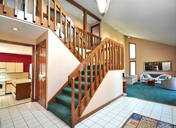 This spectacular four bedroom Contemporary is nestled on a .82 acre lot in one of Windsor's finest neighborhoods. The southwest orientation of this home brings in tremendous natural light throughout. Greet your guests in the expansive two story foyer enhanced by a vaulted ceiling, skylights, open staircase and a balcony. The heart of this home is centered around the spacious kitchen, family room and great room, which offer the perfect flow for entertaining. The kitchen features an abundance of cabinetry, an island, breakfast bar and flows to the family room where you can enjoy the ambiance of the gas log fireplace. Relax in the sun drenched great room featuring a cathedral ceiling, custom oversized windows and a slider that leads out to the fabulous 22' x 25' ground level deck overlooking the level lush yard. A second floor balcony overlooks the large living room with a soaring vaulted ceiling. Host your dinner parties in the formal dining room with beautiful and gleaming hardwood floors. Retreat to the fantastic master bedroom suite boasting a remodeled bath with dual sinks, a custom shower, Jacuzzi tub, two walk in closets, a cathedral ceiling and hardwood floors. Enjoy the luxury of a second floor laundry area. The finished lower level is the perfect bonus room for a private gym, theater room, or a recreational area. Updated mechanicals include a newer furnace, C/A equipment & hot water heater. Enjoy the total peace and serenity that this home has to offer!