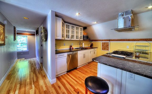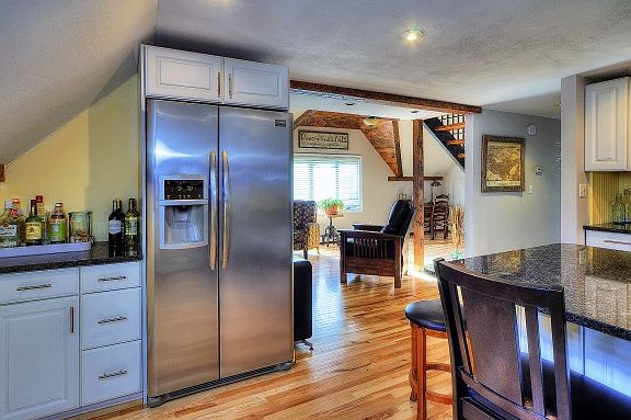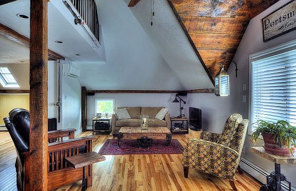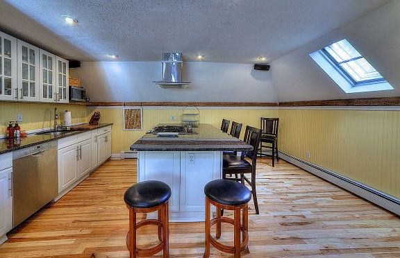 Residential Property, Carriage,Top Floor,Victorian - Portsmouth, NH Sophisticated top floor condominium located on picture perfect side street in Portsmouth's desirable Little Harbour. Renovated in 2013. Kitchen with glass fronted cabinets, granite counters, ss appliances, sunkin sink for easy cleaning and gas stove with coordinating stove hood. The perfect space to entertain, prepare and / or enjoy a meal. Large open Living Room with exposed beams and columns that pay tribute to the structures original use as a Carriage House. Open stairwell system with wrought iron inspired railings takes you to the loft bedroom. Cupola brings in added sunshine adding to the brightness of the unit. Updated full bath on first level includes ample storage for linens, and room for washer and dryer. 1 car off street parking is available and pet friendly association.
