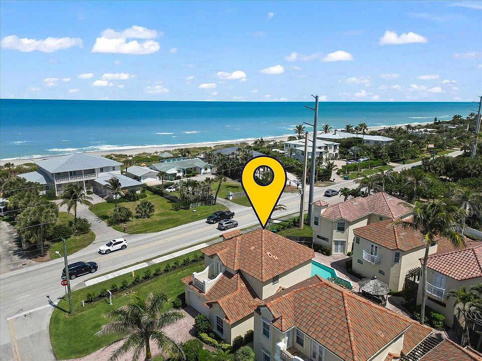Enjoy this stunning Mediterranean-style home, nestled in the charming community of Coral Cove in a prime Indialantic location. With only 7 residences surrounding a courtyard-style pool, this easternmost home offers 3 bedrooms and 3 bathrooms, including a first-floor guest room and a spacious upstairs loft. The loft provides a versatile space perfect for relaxation or entertaining, with direct access to a private balcony boasting ocean views. Enjoy the convenience of a large private paver driveway and a 2-car garage.