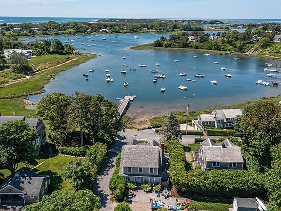 Exceptional in-town home with expansive views of Mill Pond and just steps away from the Mill Pond town dock as well as the activity of downtown Chatham. This renovated 2097 sq ft, 4 bedroom, 3 bath home is a Chatham jewel. The first floor offers an open concept with a sunny kitchen, dining-room and living-room that opens out to a large mahogany deck overlooking the Mill Pond. The modern kitchen has stainless steel appliances, granite countertops and an island. One bedroom on first floor and three on second floor which includes an en-suite primary. All bedrooms are spacious with generous natural lighting. Additional details include a brick fireplace, hardwood floors throughout, upper and lower driveways accommodating 3-4 cars, outdoor patio space with fire-pit, outdoor shower, central A/C, gas heat, garden shed, and 1-car garage. Don't miss this opportunity!