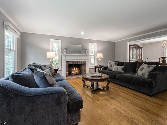 Comfortable elegance abounds in this gracious four bedroom Colonial privately situated in the desirable New Vernon section of Harding Twp. The front gates welcome you to a quiet country setting with gorgeous perennial flower beds and mature landscaping. A walkway gently winds through the gardens to the inviting entry. The appeal found on the outside flows into the interior. Pride of ownership is on display in each well-appointed room. The living room features a wood-burning fireplace and opens to the dining room with molding details and sliders to the patio. The flow continues to the chef's kitchen. Filled with natural light, this space is beautifully designed with abundant cabinets topped with granite, professional-grade appliances and sliders to the patio. Open to the kitchen, the family room is sun-filled and fabulous. It has a wall of windows and a dramatic, wood-burning fireplace. Also found on the main floor are an office with custom built-ins, a mudroom and an updated powder room. Four upstairs bedrooms include the primary suite with a dressing room, walk-in closet and lavish bath. Another updated full bath serves the guest bedrooms. Additional highlights include a natural gas generator, fresh paint throughout, and a partially finished lower level for additional recreation and work space. All the elements for an enjoyable lifestyle-including a stunning interior, gorgeous park-like grounds and a private location-combine in this exceptional property.