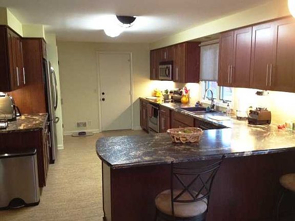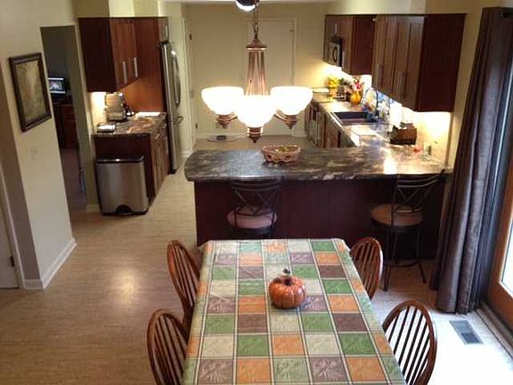 A MUST SEE! $70,000 in new improvements! Impeccable condition and what flair in decorating! Loads of flexibility in floor plan; great room with wood burning fireplace could be living room/dining room combo. Large updated cherry Shaker kitchen with breakfast bar and slider to private yard and patio. New baths. New 6-panel doors and hardware. Roof 2008; refinished hardwoods. New driveway & new 95% Hi- Efficient furnace.