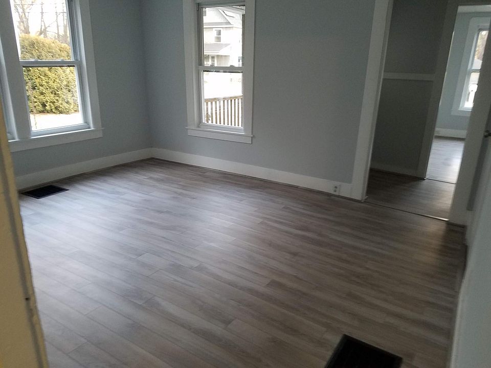 Large, 1300 sq ft apartment. Side by side duplex. Gas stove, gas hot water, oil forced hot air heat. Washer/dryer hookup. Nice yard next to a school. Off street parking. Utilities not included. No pets, no smoking. One year lease. First, last, security deposit. Showings start March 1st. Utilities not included, one year lease.