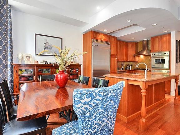 1400 + sq ft 2 bedroom + den 3 bath duplex in the heart of Paulus Hook. Home features a gourmet kitchen with Viking stainless steel appliances, granite counters, open floor plan with fireplace in living room great for entertaining, hardwood floors throughout, high ceilings, master bath with sauna, Bosch washer and dryer in unit. Close to shops, restaurants, transportation, PATH, light rail and ferry.