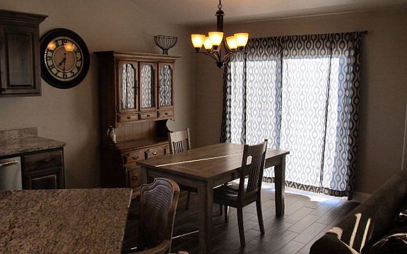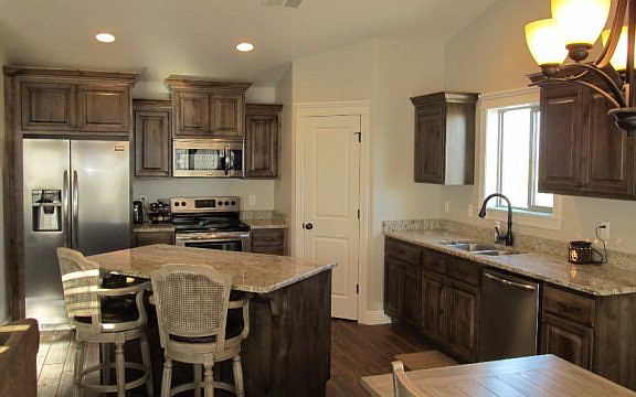 Beautiful new home Southeast of Rigby. Built in 2016. 3 bedrooms, 2 bathrooms, with an attached 2 car garage. The kitchen features knotty alder cabinets, Granite counter tops, a vaulted ceiling, and is connected to the living room giving it a very open feel. Both bathrooms have granite counter tops. The master suite features rope lighting above the crown molding, a large walk in closet, a jetted tub, and a separate shower. Some grass has been planted in the back yard