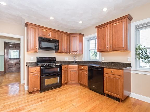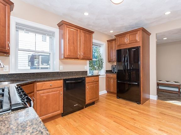 Immaculate sculpted concrete block New England Colonial in great Wakefield location! This home has been thoughtfully renovated and is in move in ready condition! Features a beautiful eat in kitchen with granite counters, cherry cabinets, recessed lighting, hardwood, newer appliances and gas stove. The first floor features a sunfilled formal living room, formal dining room with original trim, china cabinet and double doors. The first floor also has a mudroom area and half bath with laundry. The second floor has 3 nice sized bedrooms, a large walk in closet and a walk up attic for storage or potential expansion and a gorgeous 2023 full custom bathroom. Cobble stone lined slate walk ways, 3 zone Rainbird sprinkler system, fenced lot, newer boiler and updated electrical complete this home. Close proximity to trains and downtown Wakefield.