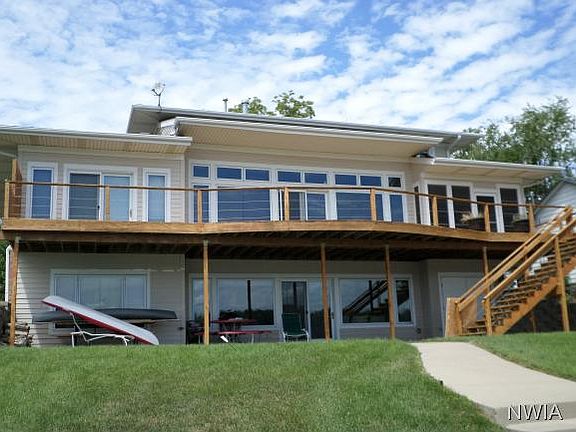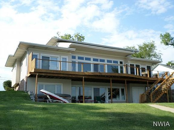 WOW! 5 bed home 4 bath, two story home in McCook Lake right on the water. Beautiful landscaping and lake shore views. Walk out from the basement to a gorgeous view or open the doors from the master suite, living or sun room to enjoy the enormous deck. The interior finishing in the home are complete with handcrafted craftsman style doors and trim. The Travertine tile on the fire place is repurposed from the former Sioux City Museum. Upper level of the home is breathtaking with 2 bedrooms with walk in closets lofted with a view of the living room. The master suite is complete with subway tile and a large walk in closet, it has a captivating view of the lake. There is an additional bedroom on the main floor and main floor laundry. The sun room off the kitchen is a unique feature that compliments the open concept kitchen and living room. The basement is complete with another bedroom, bathroom, utility garage for all of your water toys, and a ton of storage. There is one additional unfinished room with egress windows ready to finish for an additional bedroom. This home is a must see.