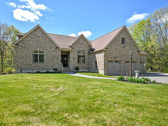 Luxury awaits through the double doors of this meticulous and captivating 4-bed, 4-bath ranch, accentuating high ceilings & gleaming hardwoods throughout. The spectacular living room greets you w/ recessed lighting and a stunning gas fireplace, while the kitchen is truly a chef's dream; featuring abundant granite countertops, SS appliances and a layout that's divine for entertaining! The dining area offers direct access to your massive deck, overlooking the serene backyard; just imagine unwinding with your morning coffee and all of natures beauty. The primary suite is complete w/double walk-in closets, private bath, tile shower and soaking tub. 3 additional bedrooms with guest and Jack & Jill baths complete the main level. Discover endless possibilities in the finished lower level featuring a bonus room, kitchenette/wet bar and a half bath. Additional features include a generator for your peace of mind, central air for year-round comfort, full walk-up attic and a heated 3-car garage.