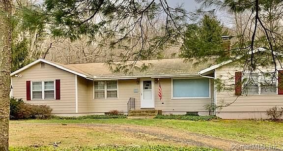 Spacious ranch on a quiet country road nestled on a large level lot. With some updating ideas and sweat equity you can turn this 3 bedroom/ 2 bath house with tons of natural light into your forever home. Shortly after construction, an addition was added including a dining room, full bathroom and family room. Home features hardwood floors in the living room and bedrooms. Updates in the kitchen include newer counter tops, sink and dishwasher. Oil tank dated 2007 and furnace dated 2011. The basement had been partially finished with extra storage, baseboard heat and a wet bar. Unfinished portion has a workshop and a large crawl space for storage under the addition.