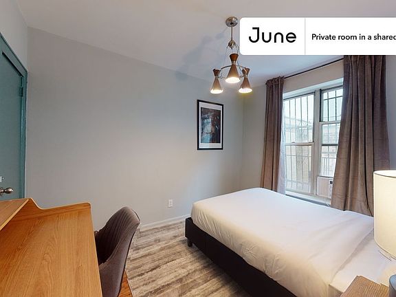 This Queen room in East Williamsburg is available on a 12 month lease or a flexible short term (31 to 364 days) lease. You pick your custom start and end date. Monthly rent rate is determined by furnishing preference, move-in date and move-out date. Speak to a June representative for recommendations on the best stay duration for the lowest rate.