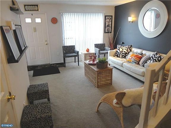 brick front largest model with plenty of living and storage space for the family on 3 floors.third floor master suite has vaulted ceilings, large walk-in closet and possibility of another walk-in closet or extra storage space next to full bathroom and full bathroom. sky lights facilitate sun/moon views, sunlight and quiet 3rd floor privacy. first floor has living room, dining, kitchen with gas cooking, laundry, storage shelves. two good size bedrooms on second floor and a full bathroom. the community offers outdoor swimming pool, tennis court, playground and clubhouse. minutes to rt. 1 and shopping. great for commuters near train stations and easy access to most major highways.