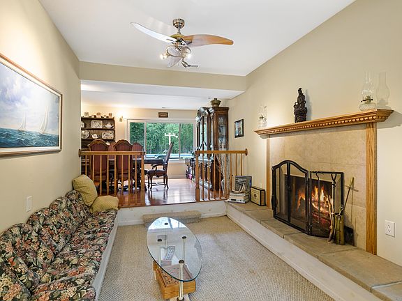 - RoomLivingRoomFeatures: Sunken, Bay/Bow Window, Fireplace - Woodburning, Floor - W/W Carpet