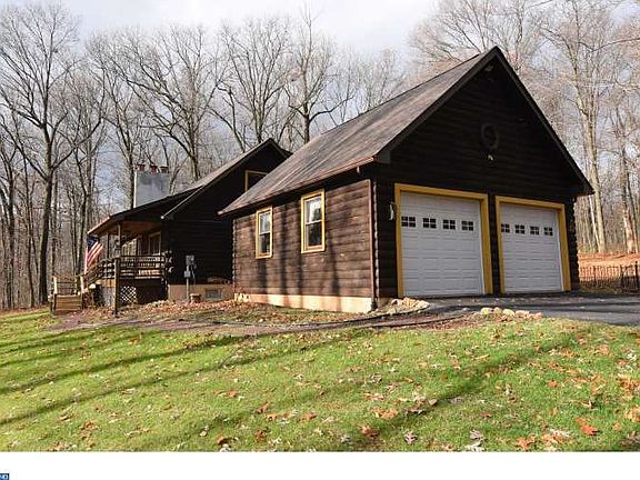 Come home to a nature retreat! This log cabin is situated on 2.2 acres of woodlands and has a covered front porch and large rear deck plus a small pond lending restorative water sounds, inviting you outdoors. Inside, this home features large rooms throughout. The first floor boasts an open floor plan with living room, dining room, big kitchen with lots of cabinetry, a generous master bedroom, dual access bath, and big, functional laundry/mud room. The second floor has two huge bedrooms and a full bath as well. Most rooms have hardwood floors. There are plenty of storage closets, cabinets and cubbies (floored and lighted) plus a cedar closet. Crafted from an old oak tree on the property, the first floor passage doors, front door, fireplace mantle and stair treads have a sentimental provenance. The wood-burning fireplace is built with Chester County stone. Two-car side-entry garage plus standalone garage/shed. New roof in 10/2016. Convenient location is just minutes from the Turnpike, Route 10, 176 and 422. True energy-efficient log construction with home from Lincoln Log Company. You're going to love it here!