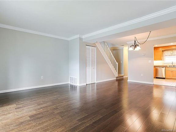 Looking for a move-in ready condo? Look no further. Come check out this pristine 2 bedroom 1.5 bathroom end unit in Village Square, a great complex in an excellent commuter's location near I84. There is a beautiful pool in the complex to cool down on hot summer days. Cook meals in the kitchen that was tastefully updated just two years ago. Enjoy the serenity of the back patio located off the living room area that has brand new flooring throughout. Upstairs you will find a spacious master bedroom with wall to wall carpet and sliders to a balcony/deck and a second bedroom with ceiling fan. Both rooms have amazing natural light. Upstairs you will also find an updated bathroom as well as a full-size washer/dryer. Pride of ownership is seen throughout. This will not last!