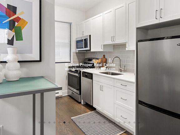 Laundry in unit, hardwood floors throughout, new kitchen with quartz counters and dishwasher. Marble bathroom. Includes heat and hot water. Cats ok. Professionally managed building close to Longwood Medical, Back Bay, and large park area.