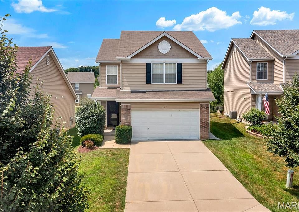 Welcome Home to 81 Parkgate Ct! Located in the A Rated Liberty High which ranks as the #2 Best Public High Schools in St. Charles County by niche.com. Nestled in a quiet cul-de-sac in Wyndgate Village, this 3 bed 2.5 bath home has been meticulously maintained and is ready for your personal touches. Walking into the entry foyer, LVP floors lead you past the first floor half bath and into the open living room. The sun filled living room seamlessly connects to the dining area and kitchen, allowing you to stay engaged in the conversation while refilling refreshments. Enjoy cooking meals in the sizeable kitchen with plenty of counterspace, bar seating, and pantry to hold all your bulk purchases. The garage connects to the kitchen making it simple to move all your groceries inside the house. Upstairs boasts 3 sizeable bedrooms, laundry room, and fresh carpet throughout (July 2025). The primary bedroom will be your oasis after a long day with walk in closet and spa like en suite featuring dual vanity sinks, soaking tub, and separate shower with built in bench. The unfinished basement offers endless possibilities: leave it as it is for additional storage or play area or finish it to your liking with the possibility to add an additional bedroom with egress window. You can’t forget about the community amenities: inground pool, playgrounds, pavilions, basketball and pickleball courts. This home is move-in ready, all you need to do is figure out where to put the furniture.
