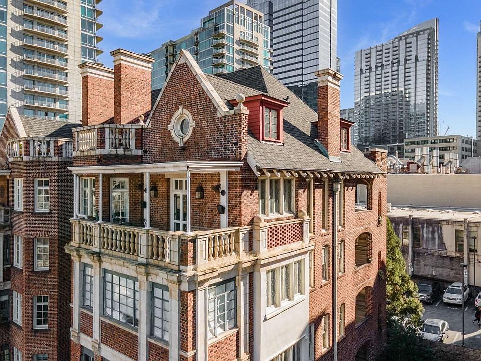 Historic Charm at its finest! This stunning home in the historic Palmer Building boast so many unique features such as a large living room with surrounded by original leaded glass windows, a large decorative fireplace, a banquet sized dining room that is perfect for a large dinner party, and a large terrace/balcony with a stunning view of Midtown Atlanta. This home also includes many modern features such as an upgraded kitchen with new appliances, white cabinets, and stone counters. Both baths have been completely renovated, the primary being a touch of modern, and the guest bath being a dash of classic with white marble surround. The primary bedroom has an abundance of custom closet space, and the guest room is the perfect place for a bedroom and a home office. Both of the bedrooms have new insulated windows, and the entire home boast upgraded oak hardwood flooring. The location of Palmer House cannot be beat with just steps to the Midtown Marta station, and all that Midtown has to offer just a block away. This home is sure to impress in every way!