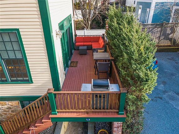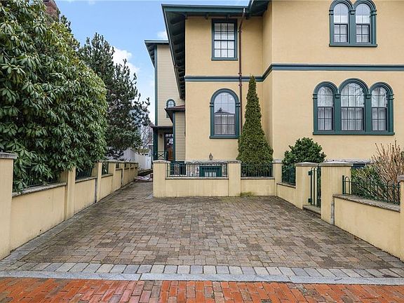 Breathtaking views from the private roof top deck overlooking church steeples, historic downtown Newport, & the harbor. This fully renovated town house style condo has four full floors of living while adorned with the aforementioned epic entertaining roof top deck! Stunning high ceilings, gorgeous wide staircases, custom built-ins, open floor concept, gas fireplace, central air, and gourmet kitchen are just a few of the highlights. The main floor has a nice ebb and flow between the large exclusive deck and indoor space complete with a strategically placed powder room. The lower walkout level has a dedicated laundry room, overflow storage, and a casual family room with stylish mosaic floor tile. The second floor has two large bedrooms with one four piece bathroom in neutral stone finish. The third floor comprises the entire primary bedroom with a deep walk-in-closet, more water views, and attached four piece bathroom with double sinks and linen closet. Elegant crown molding, detailed arched windows coupled with decorative transoms for maximum sunlight exposure, and luxurious window treatments elevate the rich historic features while adding warmth and an element of coziness. Two dedicated parking spaces is huge. The convenience to walk everywhere in Newport is monumental. Low condo fees is icing on the cake. The ability to have a four legged family member is priceless. This condo comes fully furnished for ease of occupancy. Fresh air, sunsets, & cocktails have been ordered!