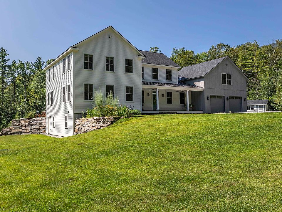 Set on 3.1 private acres with a spring-fed mountain stream, this stunning 4-bed, 3½-bath custom home—started in 2020 and completed in 2022—showcases exceptional craftsmanship, thoughtful design, and Vermont charm. True white oak hardwood floors flow throughout, complemented by a green slate-tiled mudroom with radiant heat. The fully custom kitchen boasts handcrafted cabinetry, soapstone countertops (including matching stone under the steel range hood), a black walnut island top, Wolf range, Sub-Zero refrigerator, brass fixtures, and a subway tile backsplash. Bathrooms feature custom vanities, slate and soapstone finishes, and a luxurious primary suite with soaking tub and custom shower. Year-round comfort comes from an ultra–high-efficiency hydronic system combining radiant heat and European-style wall radiators, central air with whole-house humidification, and fresh-air exchange. Additional upgrades include Marvin windows and doors, a 16’ slider to the backyard, Rockwool insulation, a 500-gallon owned propane tank, a drilled well with softening system, and a 1,000-gallon septic with shared leach field. If additional space is desired, above the heated two-car garage, a fully plumbed space awaits your finishing touches. Outdoors, enjoy a bluestone patio, outdoor shower, shed, fenced garden bursting with berries and space for vegetables with hydrant for easy watering. This is Vermont living at its finest—custom finishes, modern systems, and natural beauty all in one.