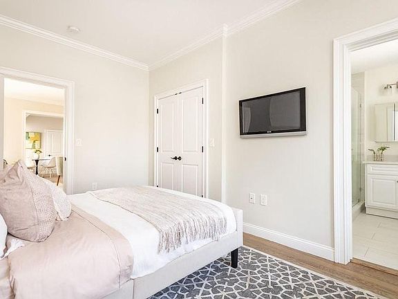 Renovated 2 bedroom/2 bath condominium conveniently located in lower Eagle Hill, convenient to everything East Boston has to offer. Enter into the living area with tall ceilings, crown moldings and dark stained hardwood floors. The adjacent eat-in-kitchen features shaker style white cabinets, quartz countertops, a subway tiled backsplash and stainless steel appliances. The hardwood floors and crown moldings continue into the 2nd bedroom and master bedroom, with the master featuring a bay window and en-suite bath with a beautiful glass surround shower. Central HVAC with air conditioning and laundry. Cat friendly for $75/month. Dogs are considered on a case by case basis for an additional $150/month upon landlord's approval Security deposit is negotiable.