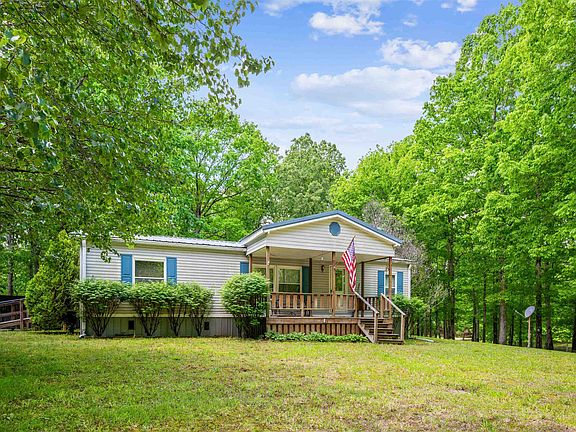 Country Living on 1.29 Acres! FURNISHED & well kept 3BR 2 BA double wide home on a pretty 1.29 acre tree lined lot. Circle drive & a double carport, single carport, & storage building. Large family room open to dining. Kitchen w/built in pantry, all appliances, & good sized breakfast bar. Sliding door out from dining to grilling/sitting porch & covered front porch! All furnishings stay if buyer would like. Mins from I-40 located betw Memphis & Nashville. Mins to town & TN River!
