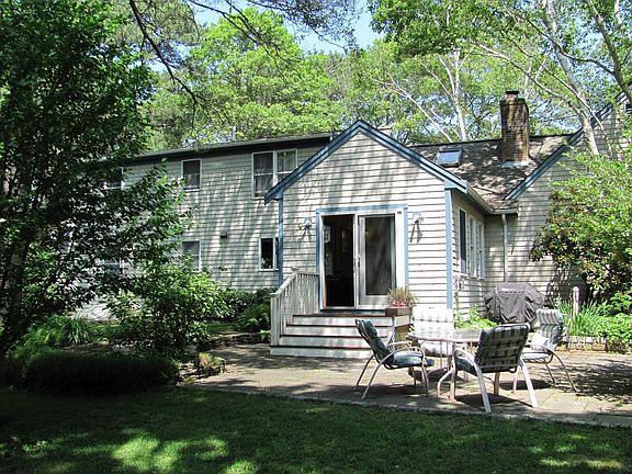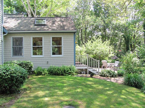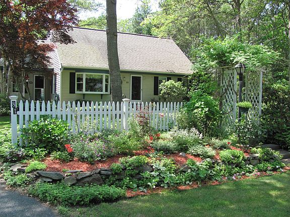 Lovely Cotuit cape located south of 28 within walk/bike distance with sidewalks to down town Cotuit village and beaches! This spacious property boasts: beautiful hardwoods, split A/C systems, kitchen with upgraded cabinets and appliances overlooking living room with beautiful stone fireplace with built-ins and light and bright four season sunroom with sliders along with spacious dining room with large bow bay window. Den with built-ins and first floor bedroom and full bathroom with laundry complete first floor living. Additional two bedrooms on second level with full bath including primary bedroom with adjacent office with skylights for remote work. This home has plenty of storage space with expansion possibilities and full basement that is partially finished for game room/additional office space along with private fenced in back yard with irrigation, seasonal views of No Bottom Pond, large patio for al fresco dining, attached two car garage and outbuilding. Great opportunity to start your own Cape Cod memories in the beautiful sea-side village of Cotuit.