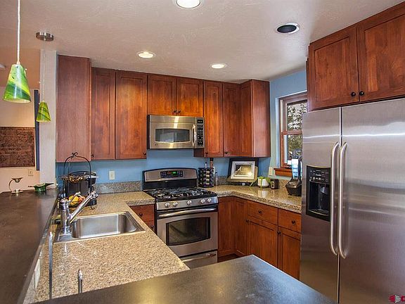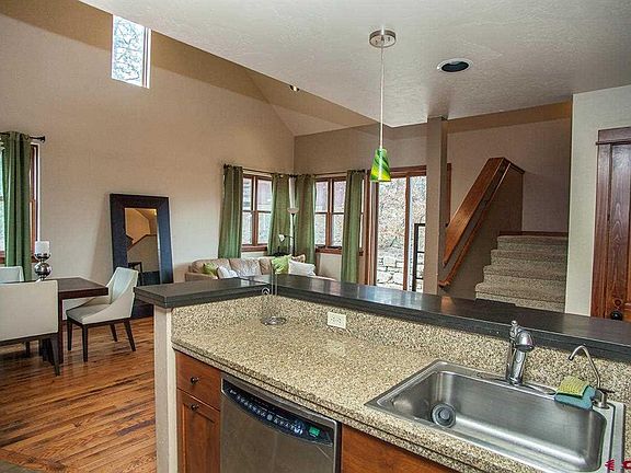 Immaculate Edgemont Highlands home just minutes from Downtown Durango! This home would be perfect for year-round living or a lovely vacation home. This 2 bedroom, 2 bath home features one bedroom on the first level and also offers a 2 car garage! The open layout design is perfect for entertaining or just spending time with the family. Tons of windows let in an abundance of natural light and gorgeous views of the ridgeline to the Southeast. The interior finishes include gorgeous hardwood floors throughout first level, granite countertops, stainless appliances, new modern lighting fixtures, and many more high-end finishes throughout. The home is situated next to an open treed common space for added privacy. There is a rear fenced yard with space and hook-up for a hot tub, along with a beautiful rock retaining wall. As an added bonus, this home is certified as Built Green. Just a few of these Green features include cellulose insulation, high performance low-e windows, fiber cement siding, Trex decking, continuous on-demand hot water heater, low VOC paints and programmable thermostats. Edgemont Highlands offers true Colorado amenities including extensive private hiking trails, fishing rights on the nearby Florida River and a community lodge. You won't want to miss this home!