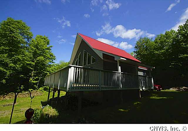 Escape to this get away on the Salmon River Reservoir. This custom built home on five acres has so much to offer and makes the perfect get away. Enter the home off the massive wrap around deck to a living room/kitchen with vaulted ceilings. This home has northern pine throughout the three bedrooms and one bath. Additional living space could be added to the full walk out basement. Just minutes from Syracuse or Watertown, come escape and relax.