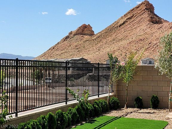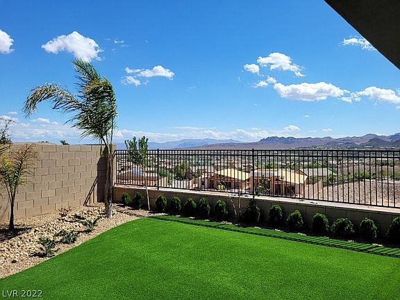 Views, Views, Spectacular Views. FOUR car tandem garage in Lake Las Vegas. 180-degree view of South Shore Golf Course, peak of the lake & surrounding mountains. New home beautifully landscaped ready to move in. Upgraded single story home in Reverie at Lake Las Vegas. A stunning master planned community featuring water sports, private club, 18-hole golf course, scenic views & village. 10' ceilings, open floor plan & great room concept with triple slider that opens to newly landscaped backyard with large patio. Upgraded plank laminate flooring t/o living area. Carpet in bedrooms. Kitchen features a large island, quartz countertops, custom cabinets & extra-large pantry. Recessed lighting. Primary bedroom features ceiling fan, entry to backyard, large walk-in closet, upgraded bath fixtures, tub & shower plus double sinks. Secondary bedrooms with ceiling fans, walk in closets & jack and jill bathroom. bath near entry for guests. Large laundry room with upgraded cabinets, washer & dryer.