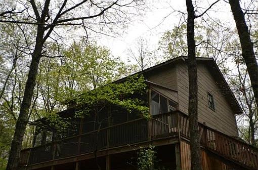 Beautiful cabin in the woods totally renovated w/ HVAC, water heater, well pump all less than 2 years old! This home offers lrg rooms making for great entertaining & comfort. The family room has a wall of built-ins for your TV & books. Staircase leading to upstairs has very detailed "Nature Stick Pickets" Spacious eat-in kitchen offer w/ walk-in pantry/laundry room. Master offers a large sitting room w/ huge half-round window for great lighting & wildlife viewing. 2nd bedroom could easily be divided & 3rd bedroom added. Screened porch, fire pit, wrap around deck, outbuilding.