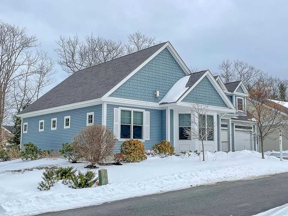 Simplify life at Ridgewood in Falmouth at this sun filled classic cottage. The first floor features a comfortable open concept where the living room flows into the dining area and then into the kitchen. Located off the living room is a charming den with large picture windows. The first floor primary suite with full bathroom is accessed near the kitchen. A wonderful four season sunroom can also be found on the first floor. The second floor features two bedrooms and one full bathroom. Take advantage of the Ridgewood community club house with a community room with a kitchen and fitness center. Centrally located in Falmouth, shopping on Route 1 in Falmouth is 5 minutes away and downtown Portland is 10 minutes away.