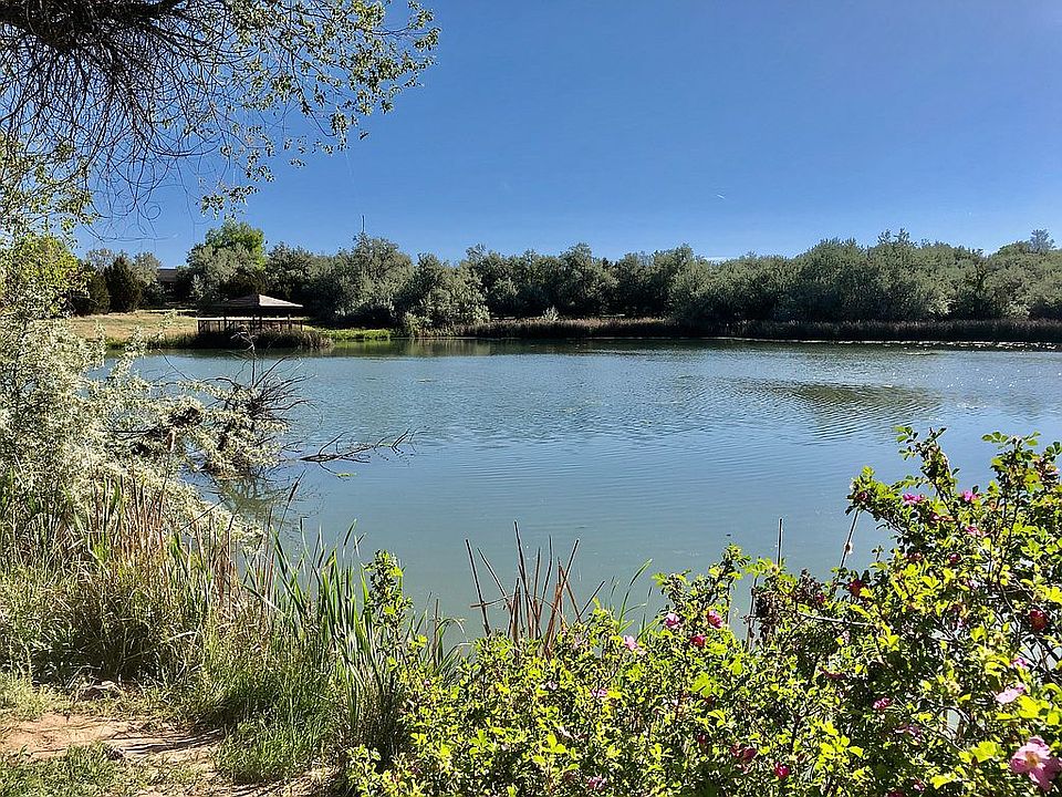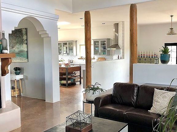 Welcome to Las Lagunitas, a beautiful gated community with its own pond and walking trails. Perched on 1.17 acres, slightly above the lush landscape you'll find this perfectly laid out custom home. Plenty of Santa Fe style awaits you with vigas, beams, wrap-around portal in the front and a back portal perfect for drinking in the glorious Santa Fe skies. This is combined with just the right amount of contemporary including the newly remodeled kitchen with glowing white Silestone counters, stainless steel appliances, soft grey slow close cabinets and a kitchen nook that you'll love gazing at the expansive views from while enjoying breakfast. This home is light and open with an ideal layout having the gathering rooms centrally located surrounded by the bedrooms, each with its own bathroom and walk-in closet. Etched concrete floors house radiant heat, tall ceilings throughout, on demand hot water heater, cistern and water catchment system, and you'll stay comfortable on these hot Summer days with central evaporative cooling. You can also age in place in this well-appointed home as it is entirely wheelchair accessible. Easy access off Interstate 25 and a quick commute to Albuquerque. Truly a must see home! Call for a private showing.
