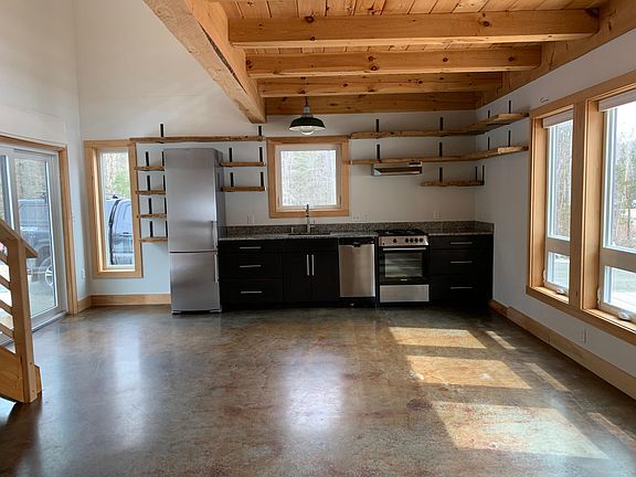 Custom built in 2016, this 700 sqft open studio apartment with a sizable timber frame loft overlooks a peaceful wooded lot on a private road, yet is located in the convenience of downtown Winterport. Creative nooks, closets and built-ins offer ample storage and modern kitchen with stainless steel appliances and granite counters in both the kitchen and bath as well as radiant heat create a high-end feel and a cozy living space. Heat, hot water, electrical, laundry hook-up included. Space available immediately.