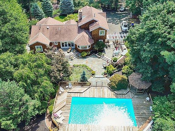 UNIQUE DESIGNER MOUNTAIN TOP ESTATE This private paradise represents a once-in-a-lifetime opportunity. Located on a secluded lot, although minutes to all major highways, this 4 bedroom residence benefits from a welcoming, open floor plan that is perfect for both formal entertaining and everyday living. Main floor highlights a chefs kitchen that blends seamlessly into the spacious dining area and great room with floor to ceiling windows that infuse the interior with warmth and tons of sunlight. The equally magnificent second floor master suite overlooks the sweeping grounds featuring a pool, gazebo, cabana and even a stable for a horse making for a perfect tranquil retreat.