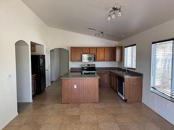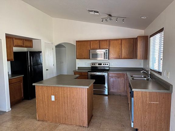 Come and check out this beautiful 3 bedroom, 2 bath home located on a corner lot! Home backs to a walking path and is located in a beautiful golf course community! Home boasts vaulted ceilings and beautiful tile floors. BRAND NEW CARPET was just installed in the bedrooms and hallway! The spacious kitchen includes all stainless steel appliances and a kitchen island. WASHER AND DRYER INCLUDED!! Large bedrooms make this a very comfortable and cozy home. Backyard is beautifully landscaped with flagstone and a covered patio that overlooks a walking path and desert wash. This home is priced to rent and won't last long!