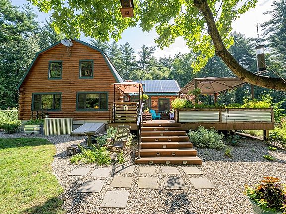 Nestled on 2.85 Acres, this Charming Custom Built Log Home offers the perfect blend of serene country living & convenience. The ideal layout w/approx 2,056 sq ft of versatile & comfortable living featuring a desirable 1st Flr main suite. The open-concept boasts a stunning Kitchen w/ Many Sleek White Cabinets,Quartz Counters & Dining Peninsula,Stainless Appliances, Dramatic Cathedral Ceiling w/Wood Beams opens to the Great Rm w/Vaulted Ceiling, Wood Flrs, Pellet Stove & Sliders to the private Deck. You’ll find an inviting Din Rm, Den/Office or BR w/Wood Flrs & roomy closet & a sparkling ½ bath. An exceptional main suite w/WI Closet & Rustic Full Bath w/Double Sink Vanity along w/handy 1st flr Laundry. 2nd Flr offers 2 generous BdRms w/plenty of closets, a trendy renovated tiled Full Bath w/Double Sink Vanity. Enjoy the picturesque outdoors w/2 Trex decks/15' x 30' AG Pool & Newly Renovated Barn/Garage. Located minutes from area Colleges, Universities & NEW SEPTIC! Live the Good Life!