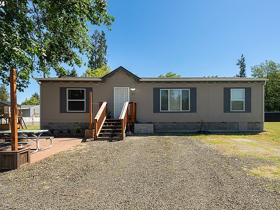 Nestled on over half an acre of flat, usable land, this like-new 2018 manufactured home is move-in-ready! Featuring an open floor plan, this home features three spacious bedrooms and two modern bathrooms, ensuring ample space for the whole family. The carpeted living room and bedrooms provide cozy warmth, while the kitchen and bathrooms showcase sleek LVP flooring. You'll appreciate the open kitchen and eating bar. The overall condition and use of a contemporary color scheme and design throughout make this home feel brand new! The exterior of the home is equally impressive, with a completely fenced HUGE yard offering privacy and security. A large shade tree and an expansive covered deck create the perfect setting for outdoor relaxation and entertaining. The outside patio area adds an additional touch of charm, ideal for summer barbecues or peaceful morning coffees. Located close to I-5 and just off Highway 42, this property serves as a gateway to the stunning Oregon Coast, making weekend getaways a breeze. With plenty of room for a shop or any other addition you can dream of, this home is a rare find, combining modern living with a touch of country with plenty of property for gardening, chickens, or a good excuse to buy that riding mower you've always wanted! Schedule your private tour today!
