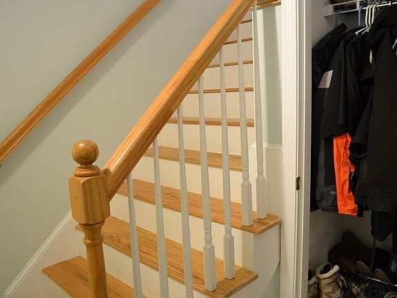 Wonderfully maintained townhouse in the young Salisbury Estates. This perfectly located unit is positioned in the back of the complex. It is situated on a cul-de-sac with easy access to additional parking and some of the best usable yard space in the development. The open kitchen/dining area features ample counter and cabinet space, beautiful counter-tops, a large pantry, hardwood flooring, and a dining area with sliding door access to the back deck and yard. Upstairs there are 2 large bedrooms with double closet doors and efficient fittings within. The ENERGY STAR washer & dryer are included in the sale & located conveniently in the full bath. Third level flexible space has durable berber carpeting. There is so much clean, dry storage space in the basement. Other highlights are central air, gas utilities, new water heater, and LED lighting. This complex is professional managed and beautifully maintained. It sits in an ideal location with close access to the train and highway.