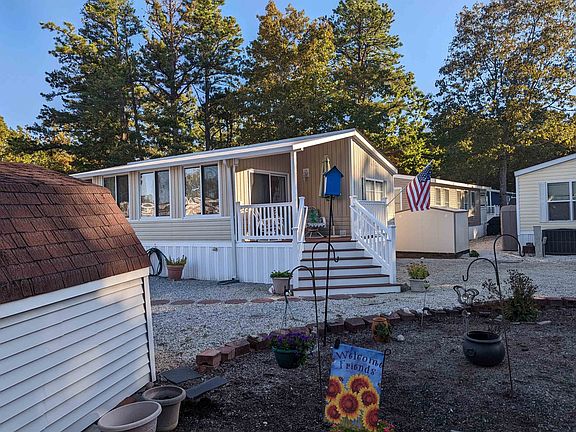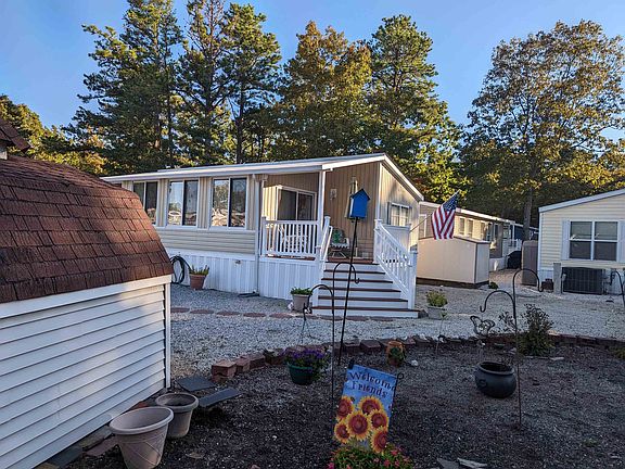 Here is the one you have been waiting for!! Massive DOUBLE corner lot. You rarely come across units with 2 lots combined. This unit has been centered on the two lots to give ample outdoor space. Large concrete pad, 2 sheds and tons of room for BBQ's, picnic tables and landscaping. Enter the unit thru your brand new trek deck with vinyl rails. Lovely large Florida room with cathedral ceilings and upgraded insulated sliding windows all with custom blinds. Large Queen sleeper sofa and full size dining table. Eat in counter opens up to the large kitchen with tons of light oak cabinets, full size range and brand new over the stove microwave. Full size refrigerator and start up dishes, pots and pans and utensils. Front bathroom has full size mirrored built in closet and storage, queen size bed with custom drapes and bed spread. Bright bathroom with built in storage and sky light for natural light with en suite master with full size bed with newer microfiber mattress (room for Queen size) tons of mirrored built ins and storage. (Heat and air is 3 years young, new kitchen faucet, microwave new, concrete pad 2 yrs old, front porch and railing new) This unit shows like new and is truly one of a kind with outdoor space. Located on quiet side of the park. Golf cart is negotiable with accepted offer. Since this is 2 separate deeded lots, you pay 2 condo fees. Taxes shown are for both lots combined