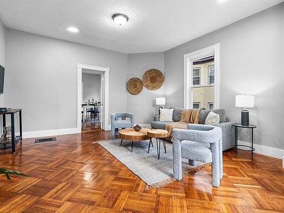 WOW- Discover this stunning 3-story colonial-style home with 4 bedrooms, 2 baths, and about 2,550 sq. ft. of living space only 2 blocks from Commuter rail station. Walk in the front door, and you are greeted with tons of natural light, high ceilings, refinished hardwood and fresh paint throughout. Originally a two-family home, this has been used as a single family for years and has a versatile floor plan with possibilities. The first floor offers a huge living room, a full bathroom, a formal dining room and eat in kitchen. Ease from the kitchen onto a large deck great for cookouts or entertaining and into a perfect yard for families. The second floor offers more beautiful floors, fresh paint, a family room with additional egress, Large Primary bedroom, a second bedroom and even a home office space or bonus space. This floor is serviced by another full bath. The third floor offers two more bedrooms with tons of closet space. There is a large basement and off-street parking for 6!!!