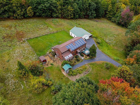 Mountain Views of the Pack Monadnock Range to the East from this lovely hillside Contemporary home with owned solar panels to reduce your utility bills. Long winding paved driveway to private setting. Rosewood door opens to a home full of surprises! Second floor landing overlooks cathedral ceilinged living room with stunning fieldstone hearth & woodstove. Kitchen with cherry cabinets & SS appliances. A sunroom off of the kitchen and a second three season sunroom off the office & full bath which was previously used as an In-Law suite. This home boasts 4 BRs & 4 BAs...room for everyone! Hardwood floors throughout. Full walkout basement with 2 car garage under. Large barn with woodstove hookup. New poultry coop & run. Large dog yard. Multiple garden spaces. So many recent updates...see the list in the property disclosures. Peaceful, beautiful setting. Perfect for remote workers, yet close to Peterborough & Keene. This property is so much more than a place to hang your hat...it is truly a country lifestyle with all the modern conveniences. Open House Sunday 10/6/24 Noon - 4p...the view alone is worth the drive!!
