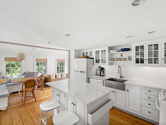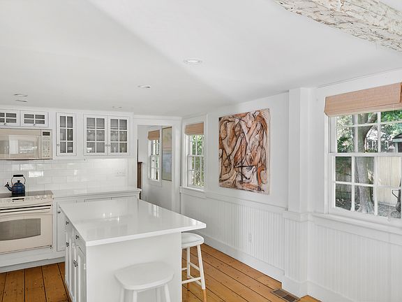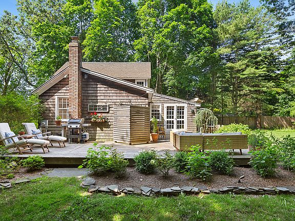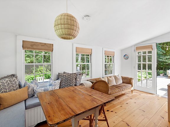 Rental Registration #: 22-1458 Updated pristine historic 2 bedroom home in East Hampton village fringe that retains exposed beams and charm with working fireplace in the living room. Downstairs bedroom has a king bed, en suite full bath, and door to the back deck. Upstairs bedroom has a queen bed, desk, high ceiling with exposed beams, with upstairs full bath. Open kitchen features a built-in breakfast nook and french doors leading to generous deck and patio spaces, outdoor shower, and a private landscaped yard with summer flower gardens. The house is set back off the road with a gate and sits on a 1/2 acre of land with a nature reserve in back that ensures privacy. Enjoy the Cookery next door for a cup of coffee and fresh-baked muffin in the morning. Easy access to town, bike to Egypt beach.